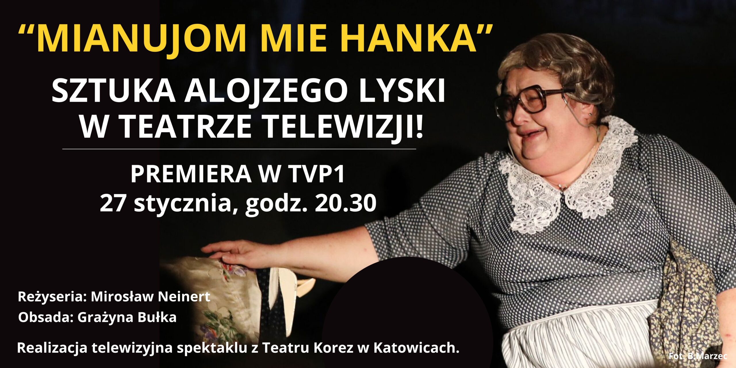 Dziś (27.01.2025 r.) o 20:30 w Teatrze Telewizji TVP w TVP1 ukaże się wyjątkowa premiera spektaklu „Mianujom mie Hanka” w wykonaniu wspaniałej Grażyny Bułki. Monodram w reżyserii Mirosława Neinerta, oparty [ … ]