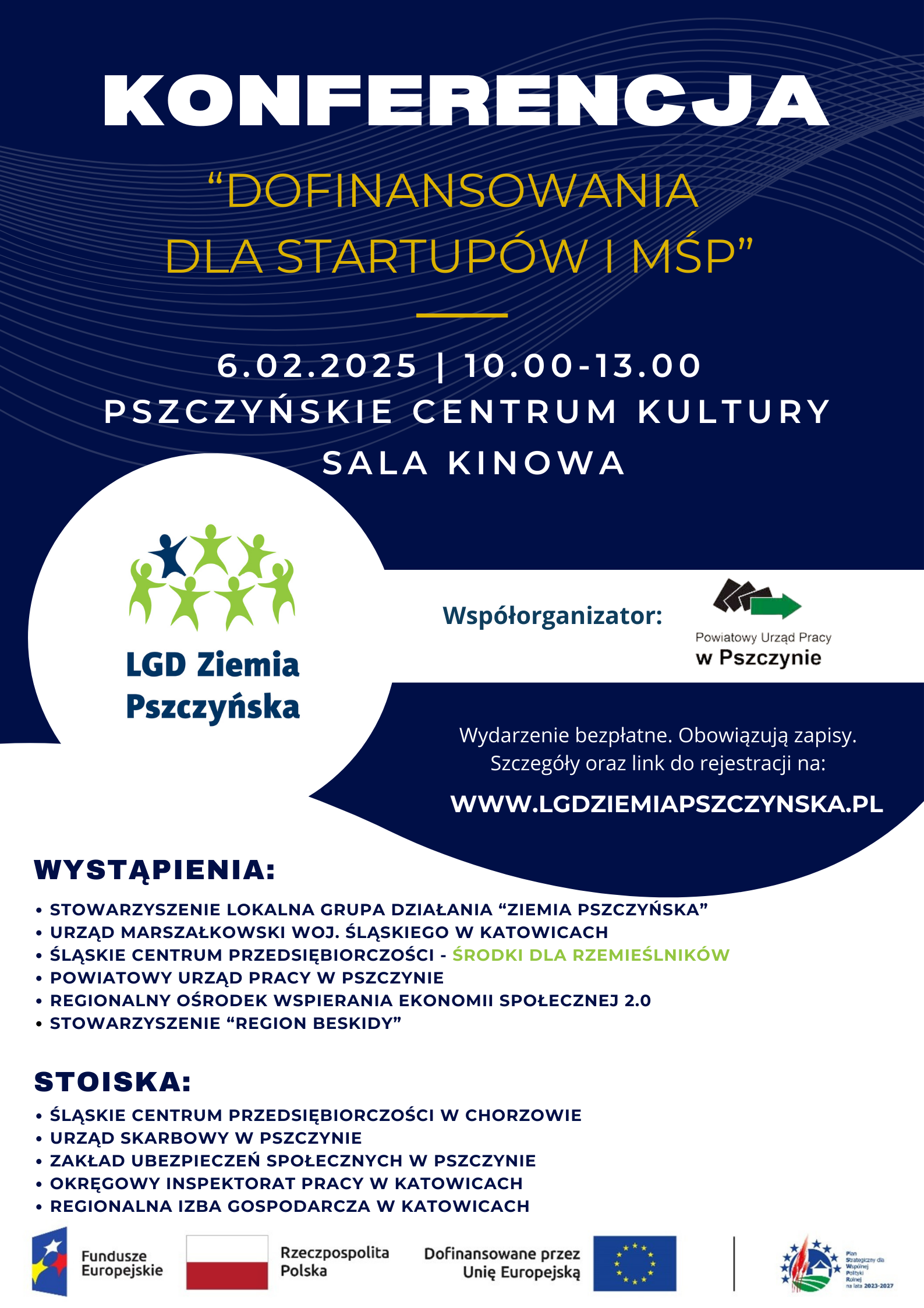 Stowarzyszenie Lokalna Grupa Działania „Ziemia Pszczyńska” informuje o Konferencji dot. dofinansowania dla STARTupów i MŚP organizowaną we współpracy z Powiatowym Urzędem Pracy w Pszczynie w dniu 6 lutego w godzinach [ … ]