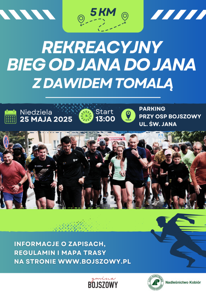 Zapraszamy na kolejny Rekreacyjny Bieg od Jana do Jana z Dawidem Tomalą, który odbędzie się 25 maja 2025 r.