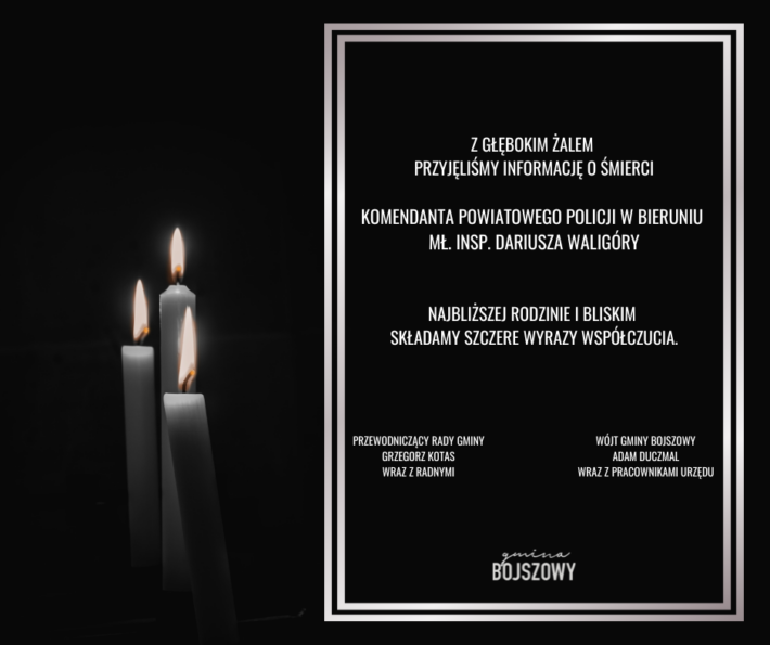 Zmarł Dariusz Waligóra – Komendant Powiatowy Policji w Bieruniu. Z głębokim żalem przyjęliśmy informację o nagłej śmierci Komendanta Powiatowego Policji w Bieruniu mł. insp. Dariusza Waligóry. Najbliższej rodzinie i bliskim składamy najszczersze wyrazy współczucia.