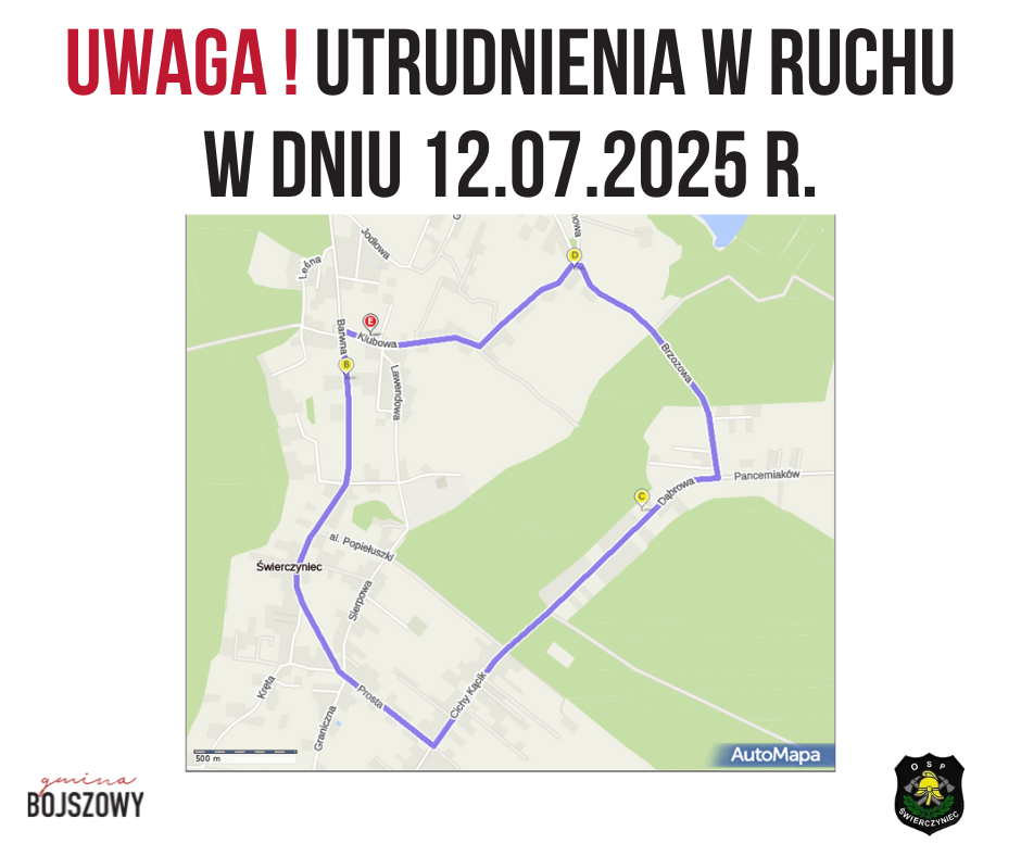 Utrudnienia w ruchu w dniu 12.07.2025 r. w godzinach 15:45-17:45